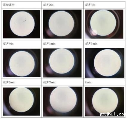 二、实验步骤:首先用500ml烧杯取加勒比单针藻液,置于超声仪中分别超声40s、1min、3min、5min、7min、9min,超声结束的藻液倒入聚乙烯瓶保存,采用血球计数法对原藻液和不同超声时间的藻液进行计数,计数步骤如下: